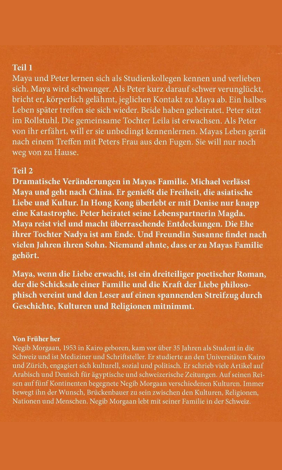 Maya, wenn die Liebe erwacht, ist ein dreiteiliger poetischer Roman, der die Schicksale einer Familie und die Kraft der Liebe philosophisch vereint und den Leser auf einen spannenden Streifzug durch Geschichte, Politik, Kulturen und Religionen mitnimmt.Leseprobe